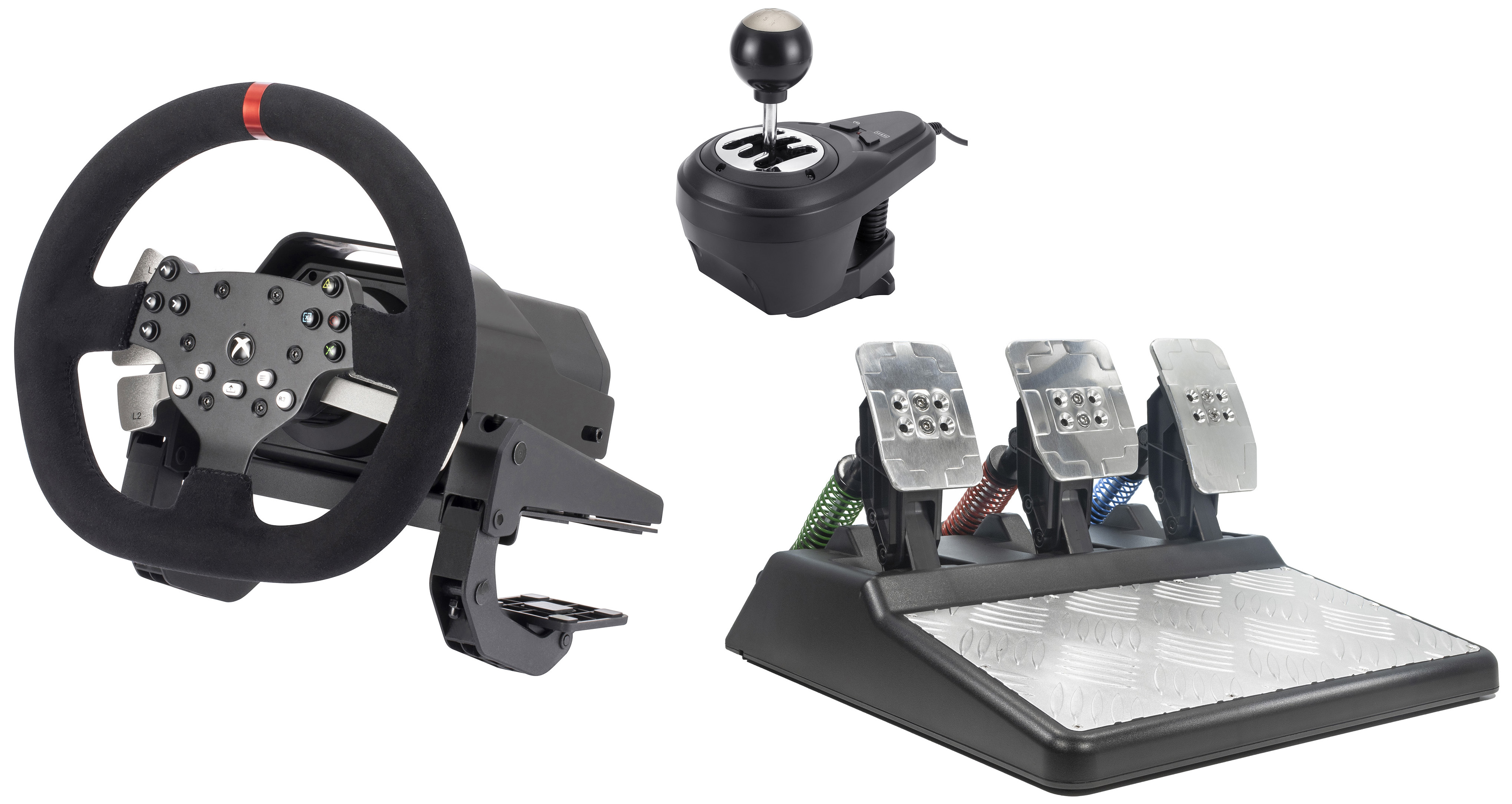 Покрытие рулевого колеса выполнено из натуральной замши, приятной на ощупь и подходящей для долговременного использования. Трехпедальный блок имеет откидную панель для ног, использование которой блокирует случайные сдвиги. Рулевая база может устанавливаться как на обычный стол с толщиной столешницы не более 55 мм, так и на кокпит игрового кресла. База имеет регулируемый угол наклона от 90 до 105 градусов, за счет чего может быть установлена на разной высоте и настроена под рост пользователя.